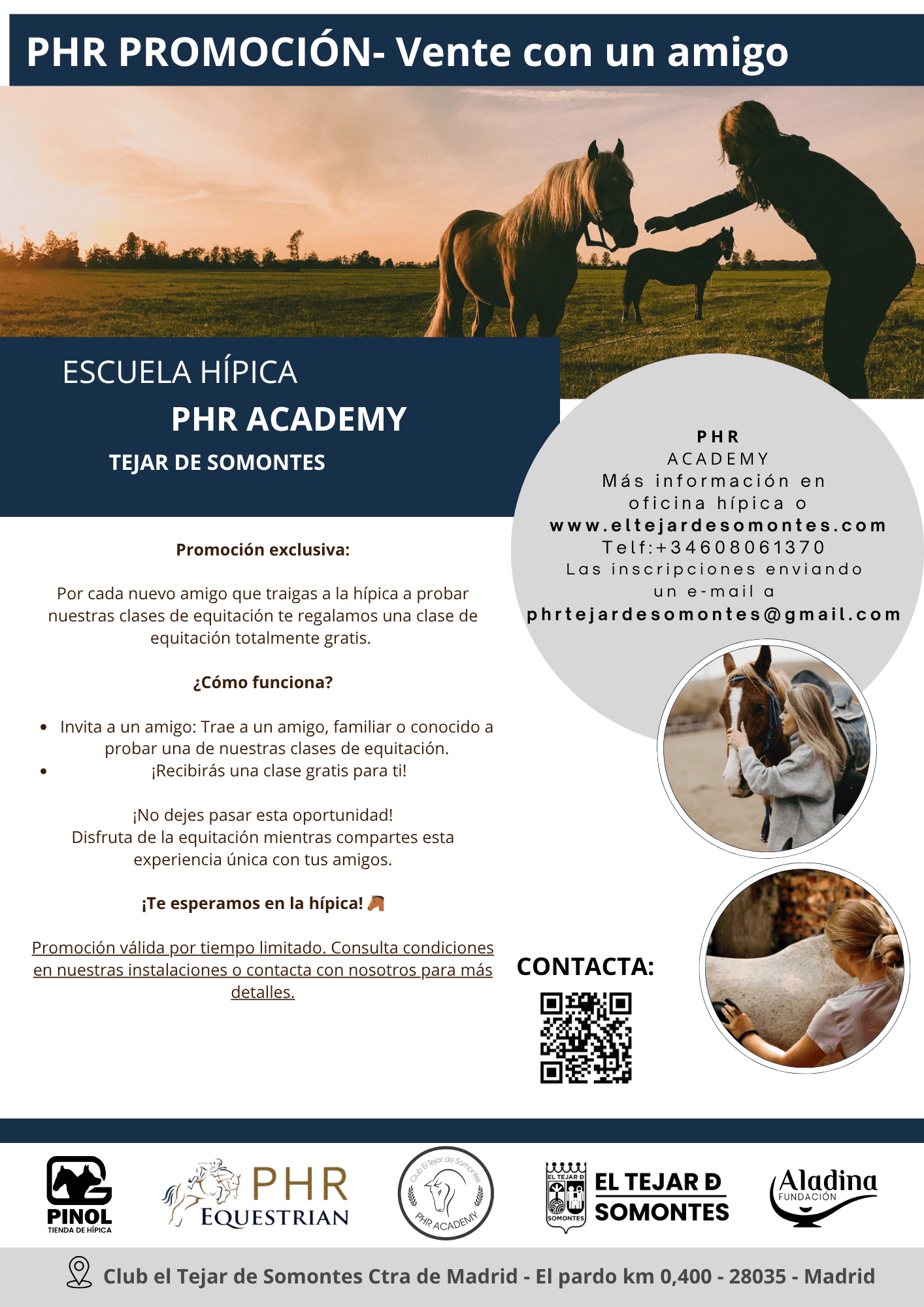 • Invite a un amigo: acompáñelo a vivir la experiencia de una clase de equitación en PHR Academy.