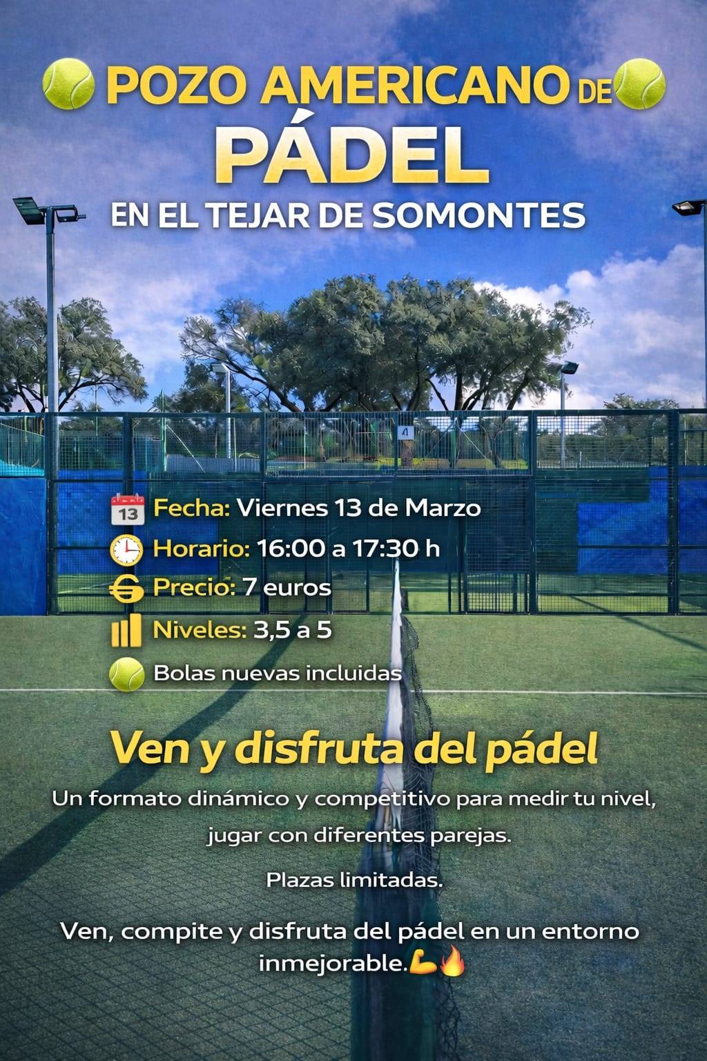 El evento se celebrará en horario de 12:30 a 14:00 y se disputará bajo el formato Pozo Americano, ideal para disfrutar de múltiples partidos y enfrentarse a diferentes parejas.
